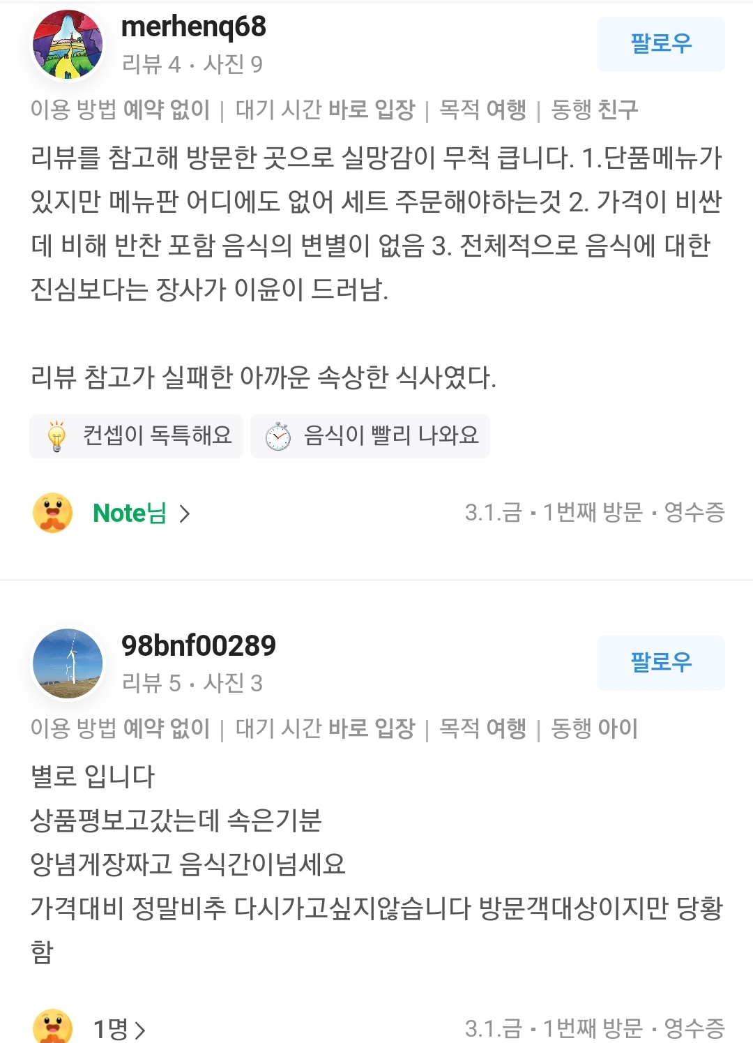 구글 리뷰 낮은 별점순으로 보면 제대로 알 수 있는 집.