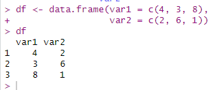 var1과 var2의 2변수로 만들어진 dataframe이다.