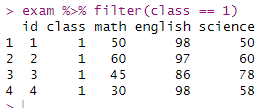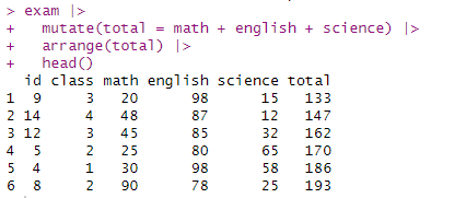 ★dplyr 함수에는 데이터 프레임명을 반복하여 입력하지 않기 때문에 코드가 간결해진다.