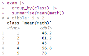 여기에 summarise를 조합하면 집단별 요약 통계량을 만든다.