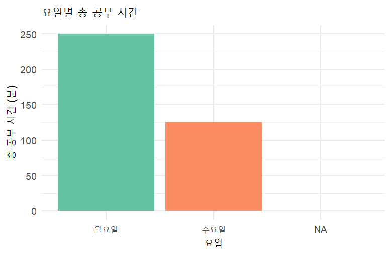 labs(title = "요일별 총 공부 시간",