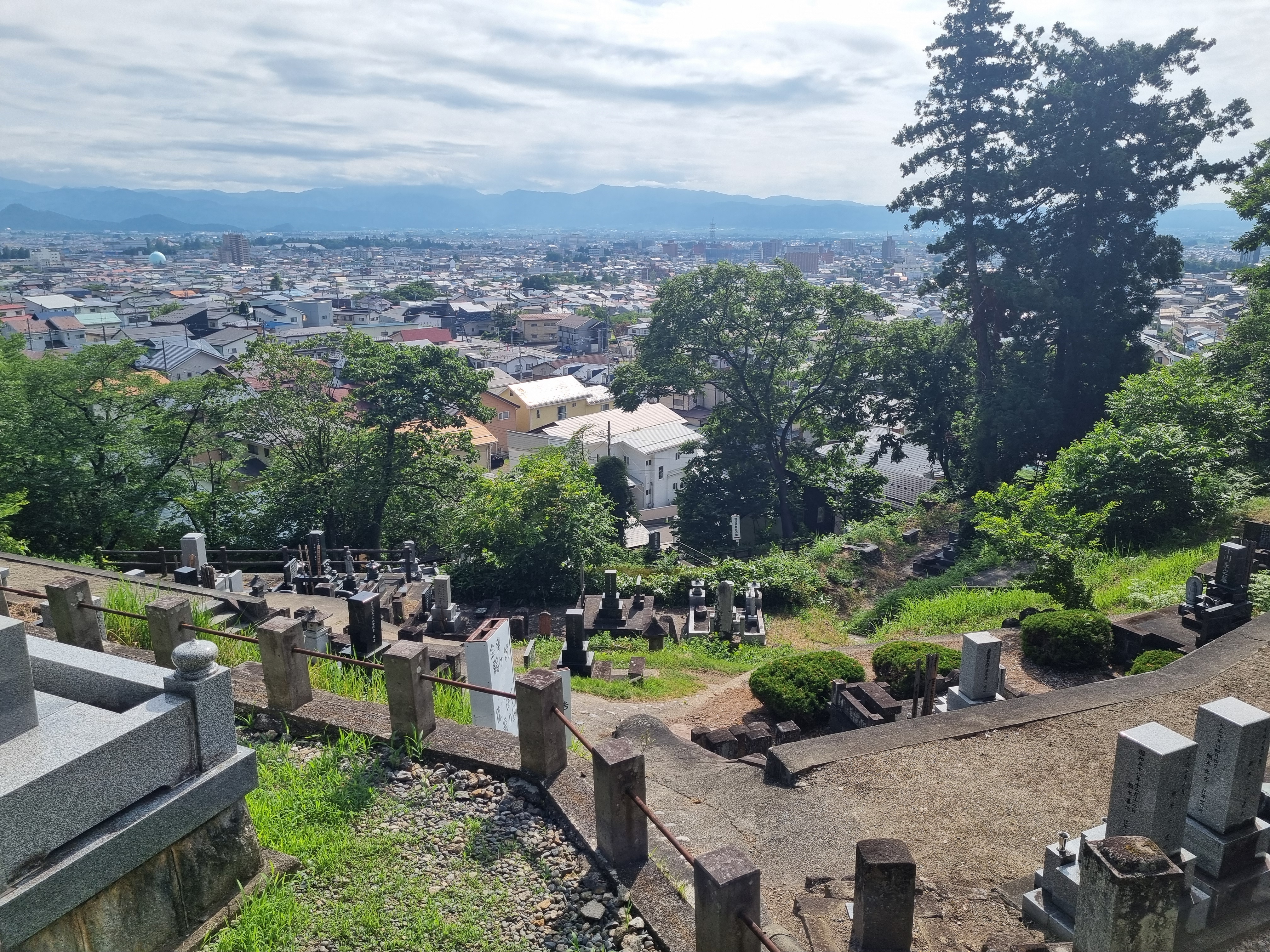 위에서 보면 다른 묘석들도 보입니다. 아이즈 지방이 한 눈에 들어옵니다.