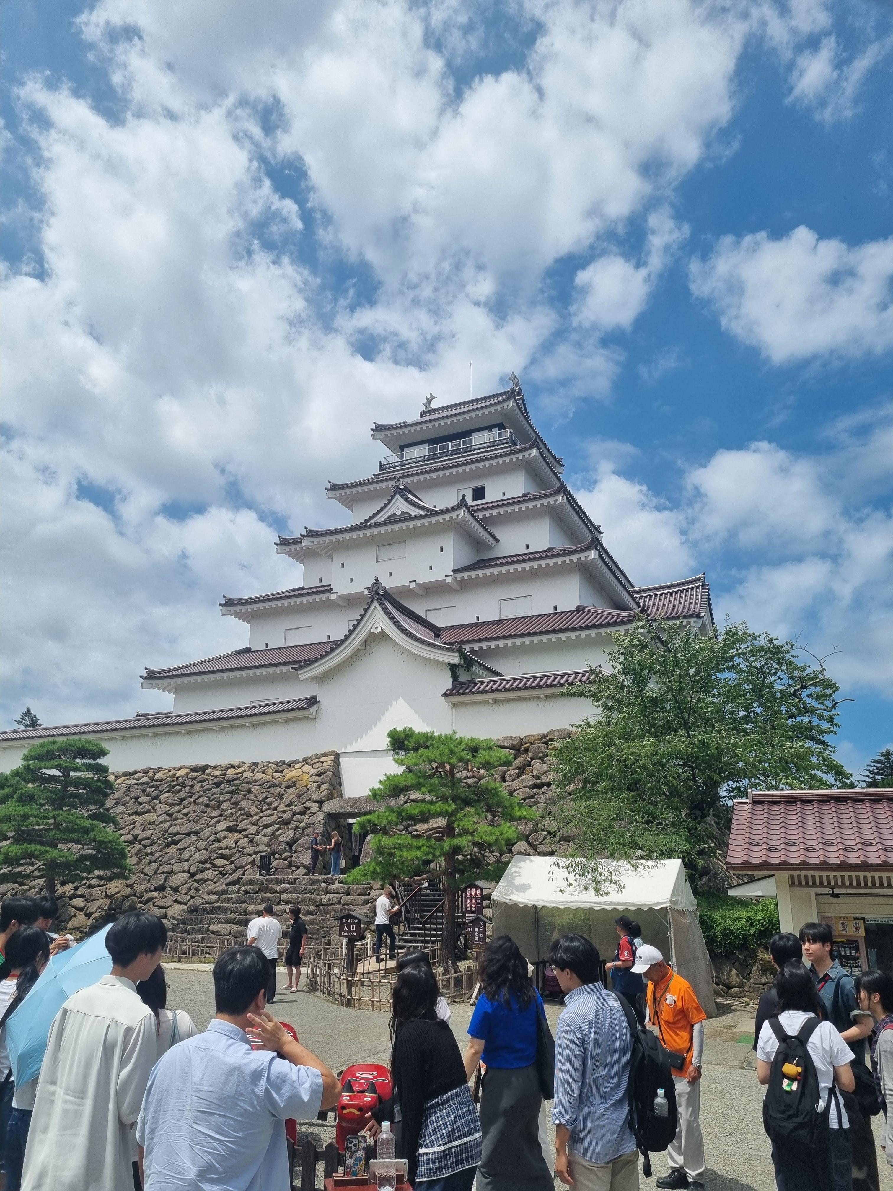JENESYS 2025의 네번째 날 프로그램은 아이즈와카마츠(会津若松), 쓰루가시마성(鶴ヶ島城), 사자에도(さざえ堂) 방문이었습니다. 후쿠시마현의 서쪽 지방인 아이즈 지역이었습니다. 후쿠시마 현 소재 대학 친구들과 버스를 타고 함께 이동하였습니다.