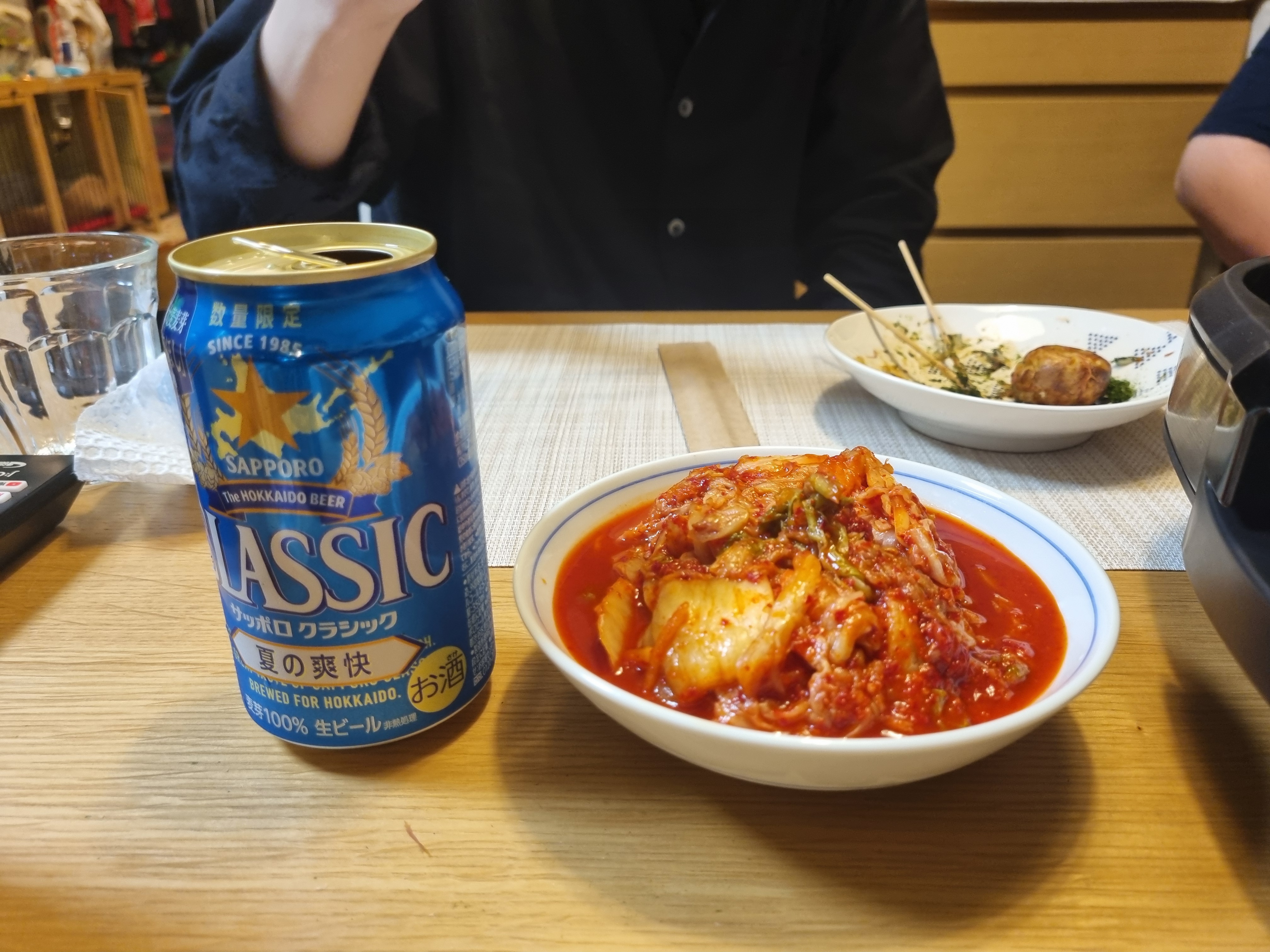 오사카의 자이니치 분이 담그셨다는 한국식 김치도 준비해주셔서 같이 먹었습니다. 맛은 약간 스파이시 했습니다.