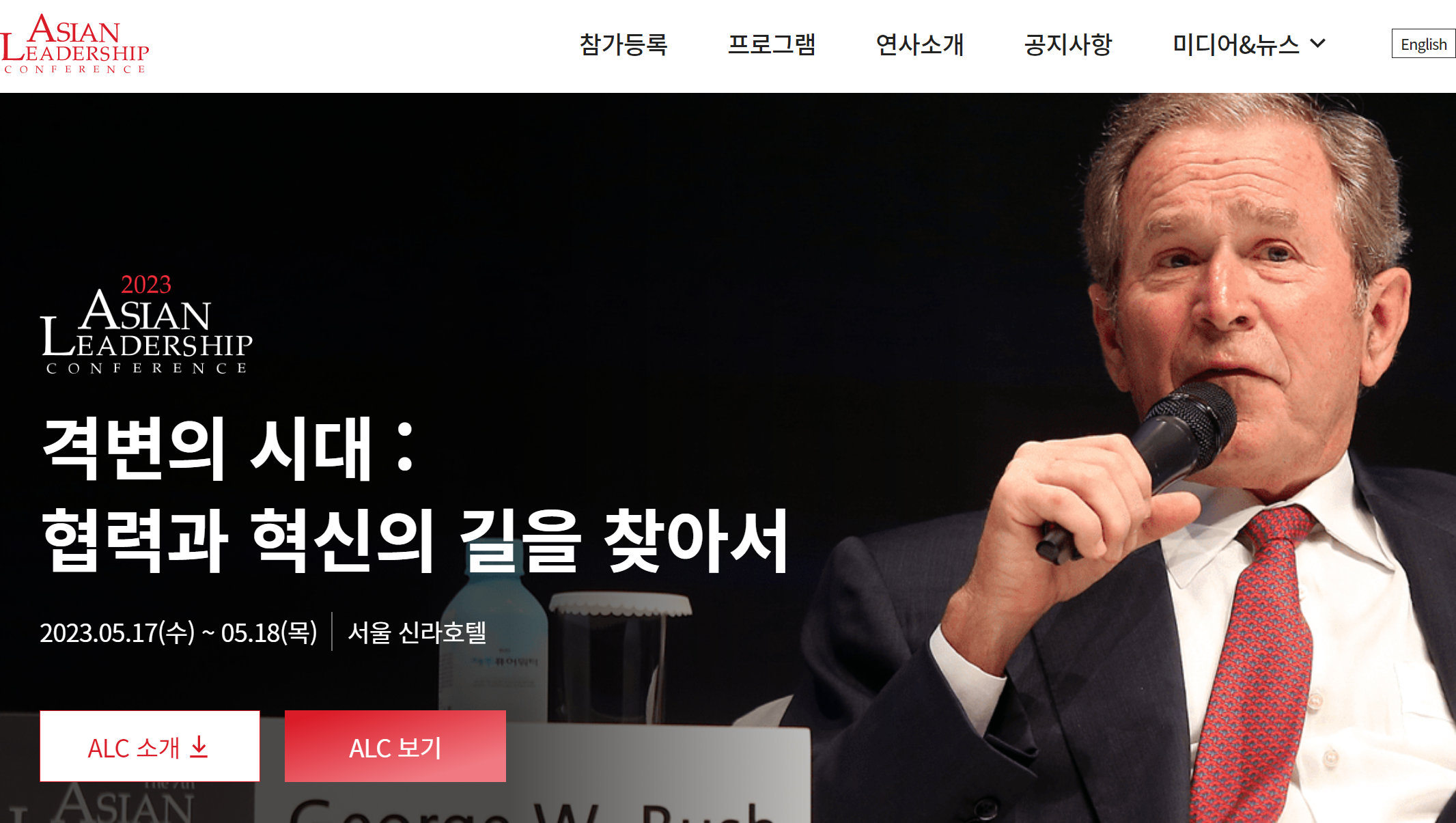 아시안 리더십 컨퍼런스 (Asian Leadership Conference, ALC)는 세계의 정치 지도자,기업인,석학들이 한 곳에 모여 현대사회가 직면한 주요 이슈들의 해결방안을 모색하는 아시아 최고 수준의 국제행사입니다. 조선일보가 주최하고 올해로 14회째를 맞이합니다.