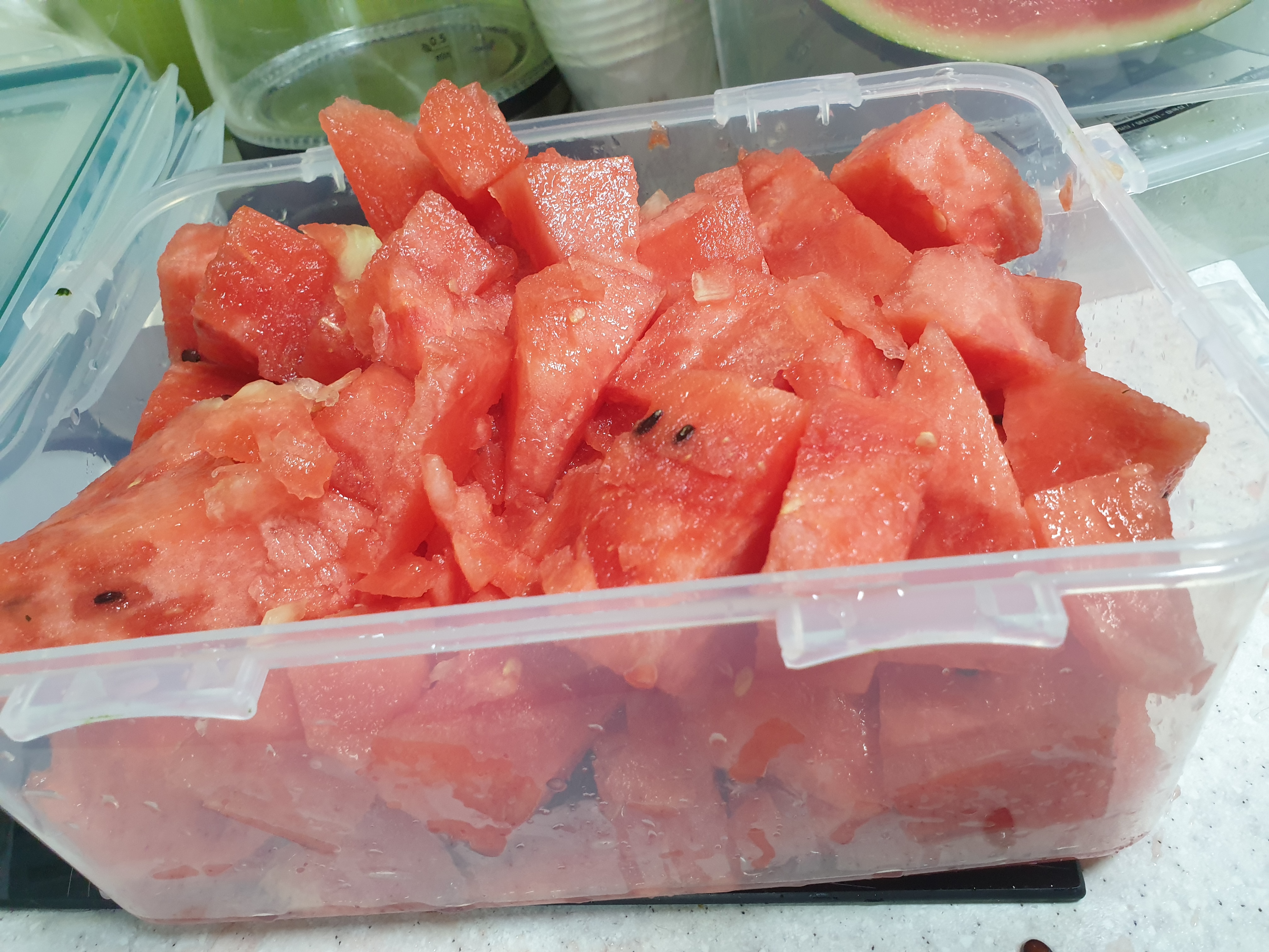 부득이하게 수박 한통 전체 깍둑썰기로 손질하였습니다.